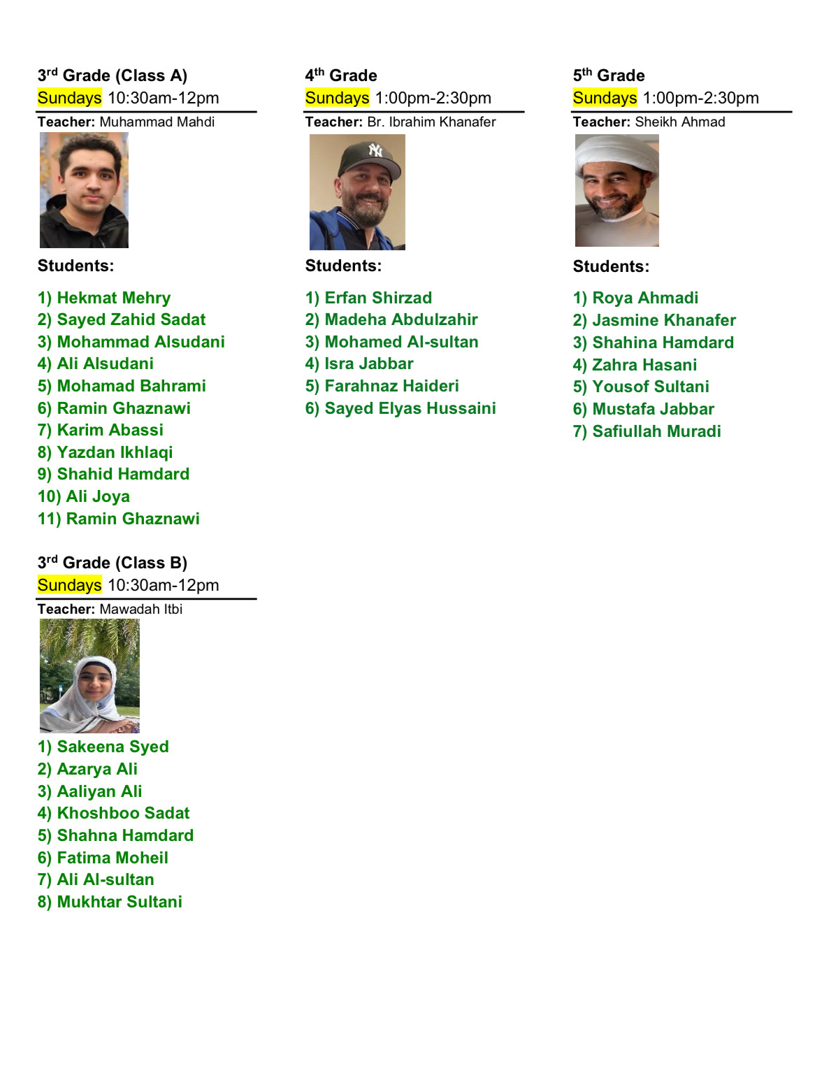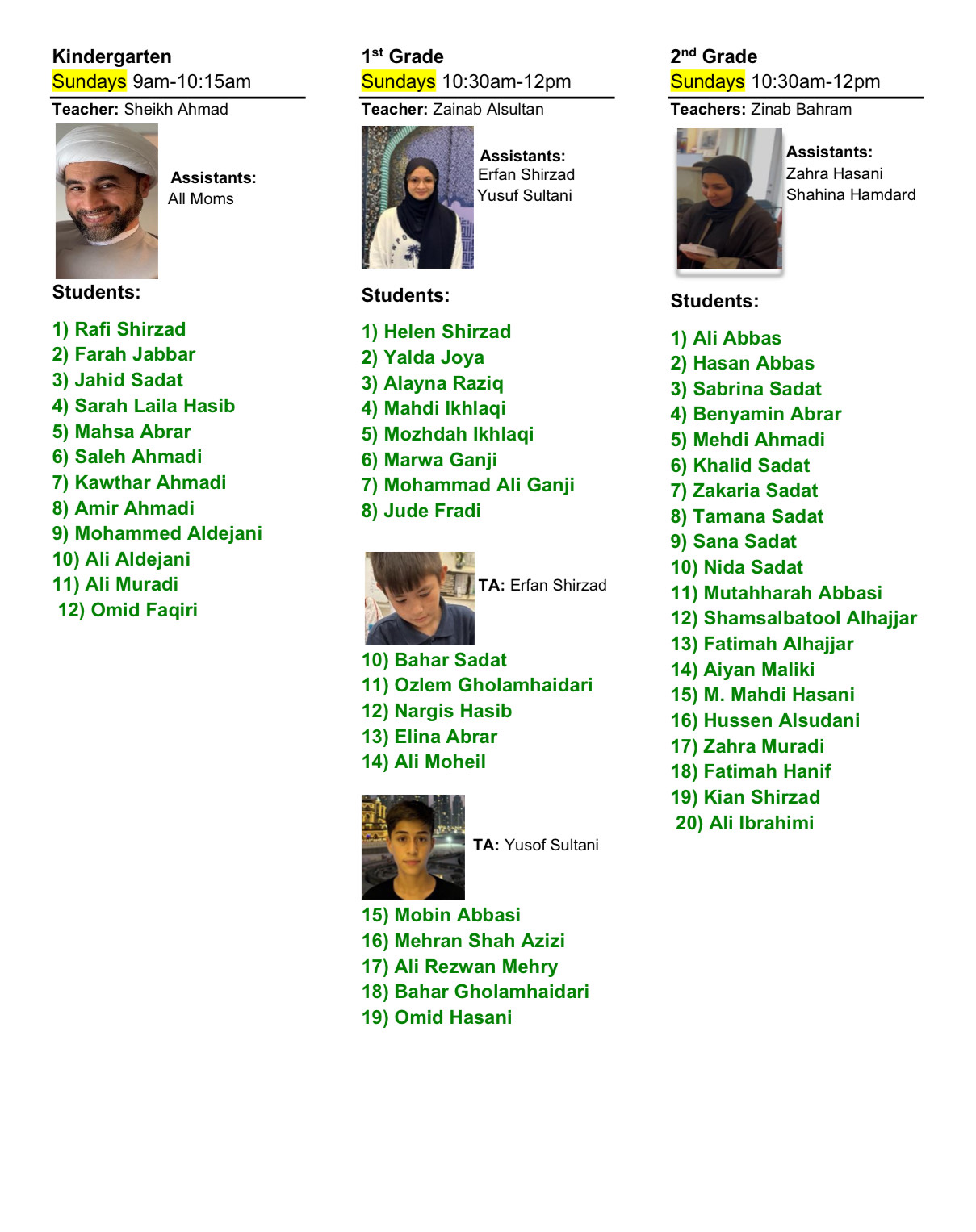 Darul Quran Classes Sundays 9:00 am to 2:30 pm |